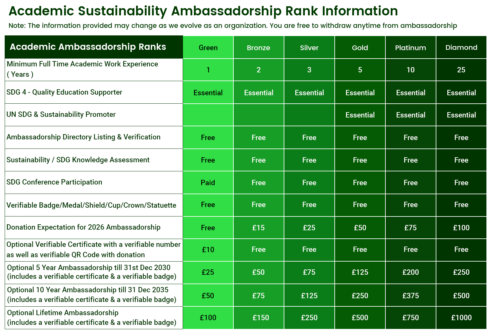 - FREE genuine sustainability identity through the ambassadorship certificate with an unique ambassadorship number and QR code, which is easily verifiable by anyone. There will be a dedicated page on our website for your ambassadorship. Similar membership & certificates costs up to £999. Secondly, such membership & certificates may not be from the UK based organization. Thirdly, such certificates are not easily & freely verifiable to public.